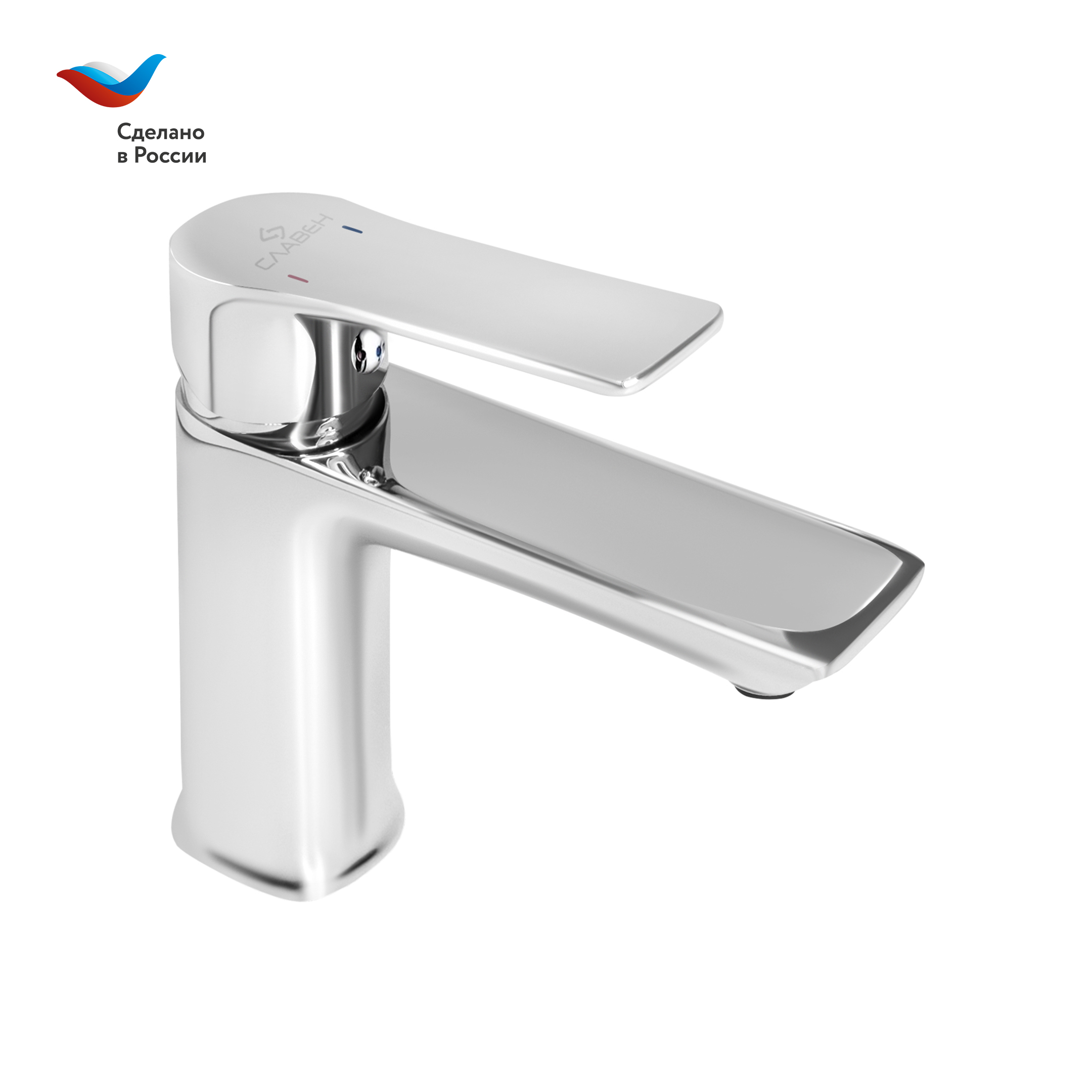 Современный однорычажный смеситель для раковины с коротким монолитным изливом от компании «СЛАВЕН» c собственной сборочной линией полного цикла в Подмосковье.