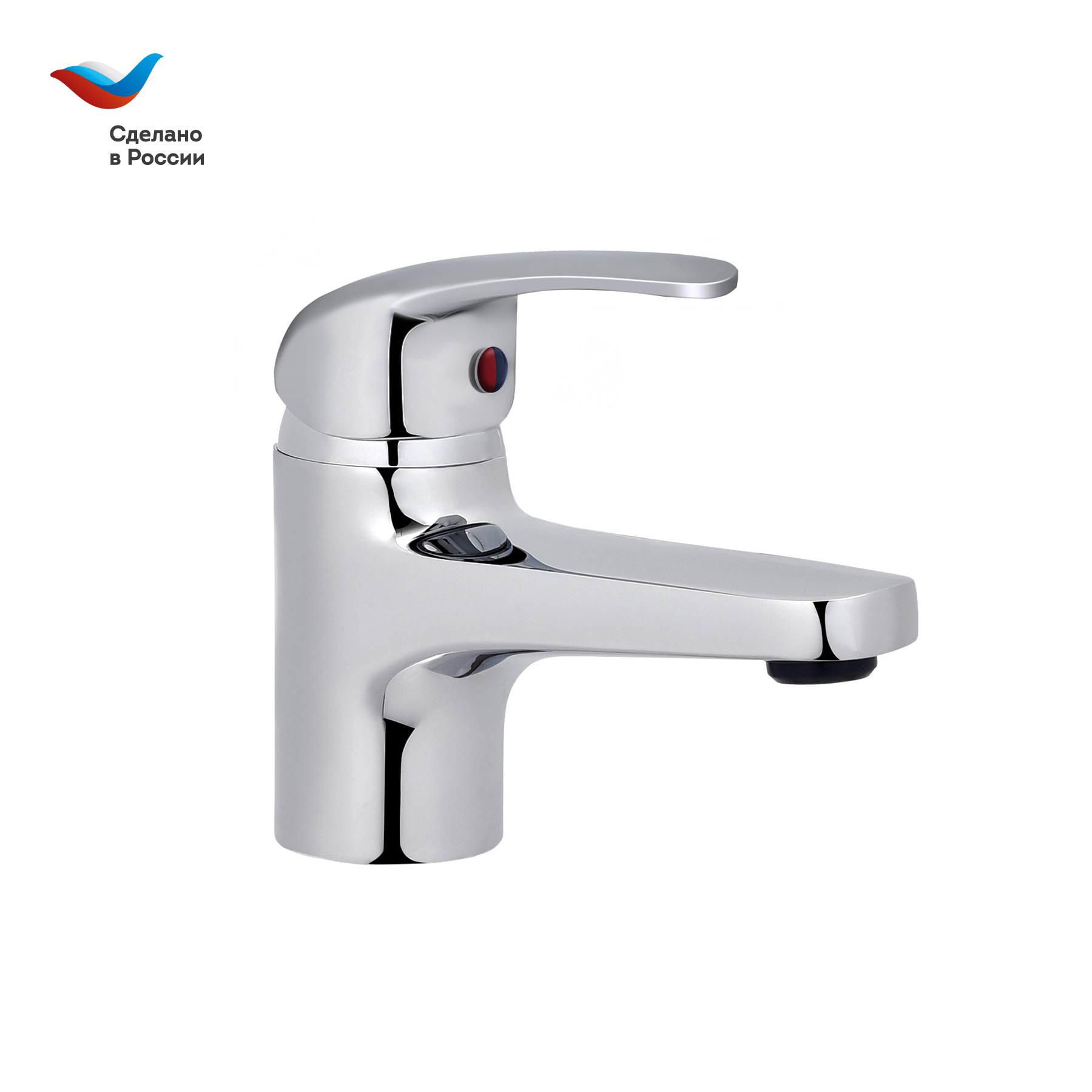 Современный однорычажный смеситель для раковины с коротким монолитным изливом от компании «СЛАВЕН» c собственной сборочной линией полного цикла в Подмосковье.